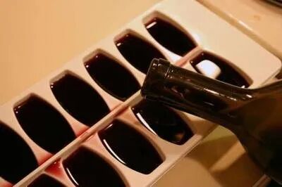 煮菜时怎么衡量放多少葡萄酒呢?我们既不希望放太少酒不入味、也不想“酒漫金山寺”,这时我们做好的葡萄酒冰块又派上用场了。烹饪的时候加入一两块冰块,一块冰大致和28克的水是等量的,我们可以利用这一点来掂量烹饪过程中所需葡萄酒的分量。当然,这还取决于你的制冰格的大小,希望你不要为了多尝到酒味用整碗的冰。